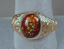 Good fire agates are as impressive in their color display as fine black opal, but far less expensive. Additionally, fire agate is as hard and durable as any aggregate quartz making it wonderful for jewelry uses, including rings. The colors and form are rich and dramatic and generally appeal strongly to men (although I can personally attest to its appeal to women!)