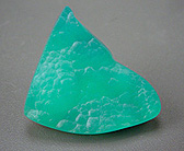 Less common, and more valuable, is a type of chalcedony with vivid greenish blue color, frequently referred to as "gem silica" in the trade. More correctly it would be called chrysocolla chalcedony. Structurally it is composed of near colorless chalcedony that has been stained, on a microscopic level, by infiltration of solutions carrying the same copper salts which give color to the mineral chrysocolla.