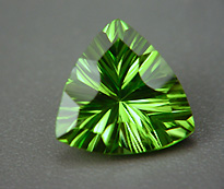 The high birefingence of this gemstone necessitates careful orientation in cutting to prevent "fuzziness" of facet reflections through the table. Distinctive, disk-like liquid and gas "lily pad" inclusions can often be seen under magnificatiion.