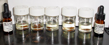 Sets of heavy liquids with known SGs are used to determine (within a range) the SG of unknown gems. Besides being imprecise, this method uses smelly and potentially hazardous chemicals and can damage porous gems.