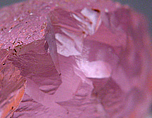 [Quench-crackled quartz pebble dyed pink, the closeup shows clearly that the pink dye is confined just to the cracks] Other Environmental Factors: Light: Some gems can fade or change color when exposed to light. An extreme example of this phenomenon is seen in the rare mineral pyrargyrite which must be kept constantly under opaque covers or else light exposure quickly renders its originally red color completely black. In the case of gem minerals, there are only a few to be concerned about. Kunzite (pink spodumene) can lighten in color with long term exposure to bright light, and is sometimes suggested as an "evening only" gem. Certain brown topazes, notably those from Mexico, can lighten dramatically, even becoming colorless with continuous light exposure.
