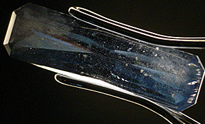 When the moveable baffle plate is put into place, darkfield illumination is produced which enters the gem only from the side. The highlighted internal features are then viewed against the black background of the baffle, and stand out in high relief. This sort of lighting is best for examining and identifying inclusions in a gem.