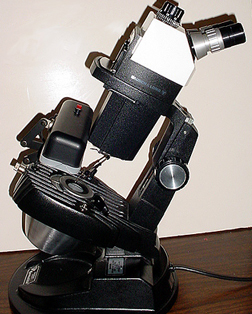 Gem scopes differ from biological scopes in that the total maximum magnification is usually lower (about 70x as compared to as much as 1000x) and there are more lighting options. For example, a good gem microscope has: brightfield illumination, darkfield illumination, oblique lighting, overhead lighting, a light diffusing system, a system for immersing the object in liquid in a well for viewing, and a light polarizing set up. They also generally come fitted with a pivoting stone holder.