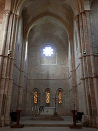 Alabaster windows and rosette in the central apse of Casamari Abbey church (1203–1217) in Lazio, Italy