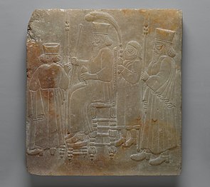 Archaizing Relief of a Seated King and Attendants, Iran, Qajar period (late 19th century CE, in the style of 5th–4th century BC). Brooklyn Museum.