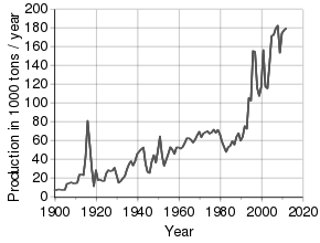 - ^ a b c d "Mineral Commodity Summaries: Antimony" (PDF). United States Geological Survey. Retrieved 1 January 2016.