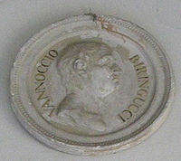 - ^ Vannoccio Biringuccio, De la Pirotechnia (Venice (Italy): Curtio Navo e fratelli, 1540), Book 2, chapter 3: Del antimonio & sua miniera, Capitolo terzo (On antimony and its ore, third chapter), pp. 27-28. [Note: Only every second page of this book is numbered, so the relevant passage is to be found on the 74th and 75th pages of the text.] (in Italian)