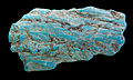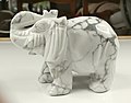 Howlite is commonly used to make decorative objects such as small carvings or jewelry components. Because of its porous texture, howlite can be easily dyed to imitate other minerals, especially turquoise because of the superficial similarity of the veining patterns. Howlite is also sold in its natural state, sometimes under the trade names of "white turquoise" or "white buffalo turquoise," or the derived name "white buffalo stone" and is used to produce jewelry similar to how turquoise is used. Varieties of the unrelated gemstone turquoise which are white instead of the typical blue or green color have been mined in the US States of Arizona and Nevada, and are also marketed as "white buffalo turquoise". Most of the white varieties of turquoise are chalk-like with a Mohs hardness of 1, and are not as hard or durable as howlite, and subsequently require stabilization in order to be used in jewelry, which has resulted in howlite being more popular for use in jewelry than the artificially stabilized white forms of the mineral turquoise.[9]