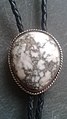 Howlite and Silver Bolo tie with small inclusions of tiny, brownish howlite crystals. This howlite specimen is from Tick Canyon