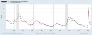 - ^ "Pennsylvania Economy at a Glance". bls.gov. Retrieved May 22, 2020.