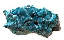 Plancheite is a secondary mineral formed in the oxidized zone of copper deposits, associated with other copper minerals chrysocolla, dioptase, malachite, conichalcite and tenorite.[5] It occurs with primary malachite at the Milpillas Mine in Mexico.[7] The type locality is the Sanda Mine, Mindouli, Pool Region, Republic of Congo.[2]