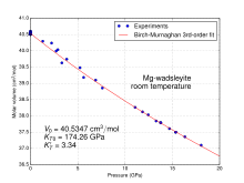 - ^ Kleppe, A. K. (2006). "High-pressure Raman spectroscopic studies of hydrous wadsleyite II". American Mineralogist. 91 (7): 1102–1109. Bibcode:2006AmMin..91.1102K. doi:10.2138/am.2006.2060. ISSN 0003-004X. S2CID 51496930.